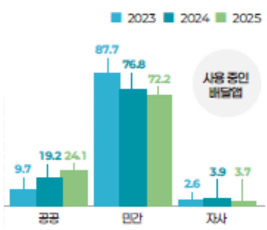 또한 민간 배달앱 중심 구조에서 벗어나기 위한 움직임도 나타나고 있다. 공공배달앱 활용이 확대되며 수수료 부담을 낮추려는 시도가 이어지고 있다. 이는 단순한 채널 변화가 아니라 비용 구조를 통제하려는 흐름으로 볼 수 있다.