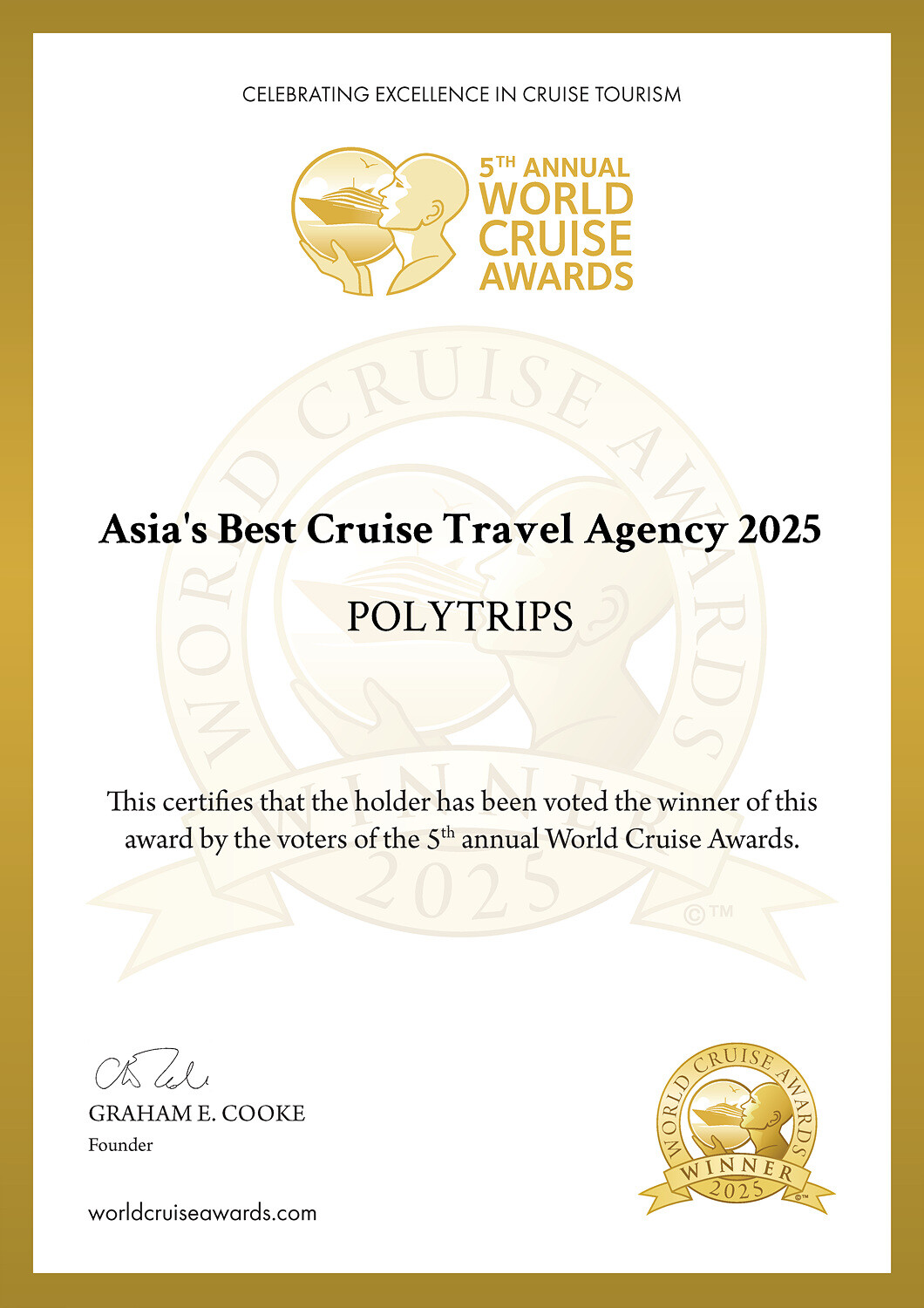 폴리트립스는 갤럭시 크루즈, 로얄캐리비안, NCL, MSC, 아마워터웨이즈, 실버씨 등 40여 개의 글로벌 크루즈 선사와 직접 제휴하여 실시간 예약 시스템을 구축하고 다국어 서비스를 제공하며 아시아 크루즈 시장의 허브로 자리잡은 한국발 글로벌 크루즈 여행 플랫폼이다. 올해 ‘월드 크루즈 어워드’ 역사상 최초로 한국기업으로서 아시아 베스트 후보군에 올랐으며, 전 세계 고객과 업계 전문가들의 투표를 통해 해외 유명 크루즈 여행사들을 제치고 아시아 베스트에 선정되어 지난 12월 6일 중동 페르시아만에 위치한 바레인 왕국(Kingdom of Bahrain)에서 수상했다.