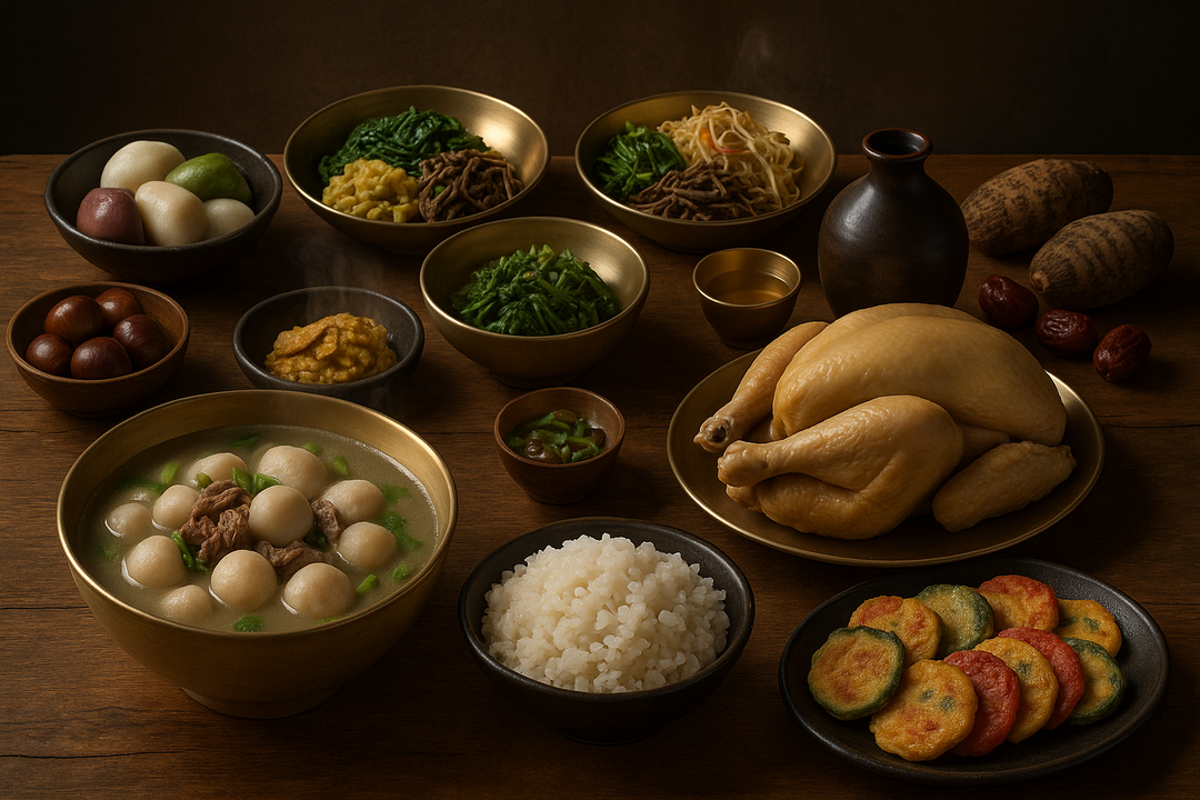 송편이 달을 향한 소망의 상징이라면, 구수한 국물로 명절의 시작을 알리는 토란국부터 첫 수확의 기쁨을 담은 백주(白酒), 살 오른 황계(햇닭), 그리고 오색 빛깔의 전(煎)과 나물은 풍요 그 자체를 맛보고 나누는 즐거움의 중심에 있었다. 송편 너머, 우리네 한가위 밥상을 더욱 풍요롭게 만들었던 절기 음식들의 숨은 매력과 그 안에 담긴 지혜를 더욱 깊이 살펴본다.