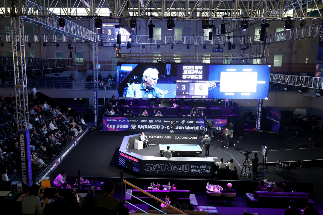 [Cook&Chef = 조용수 기자] ‘2025광주세계3쿠션당구월드컵’이 11월 3일부터 9일까지 광주광역시 빛고을체육관에서 성황리에 막을 내렸다. 이번 대회는 세계캐롬연맹(UMB)과 아시아캐롬당구연맹(ACBC)이 주최하고, 대한당구연맹과 광주광역시당구연맹이 공동 주관했다.