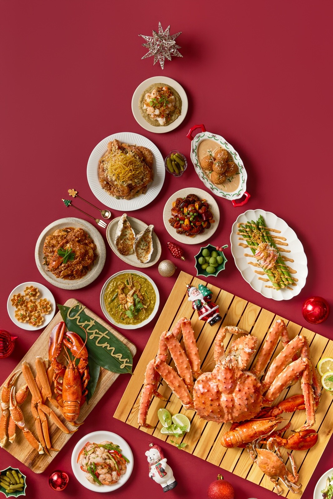 이번 프로모션의 메인 테마는 갑각류다. 제철을 맞아 살이 통통하게 오른 킹크랩, 로브스터, 대게, 꽃게, 새우를 찜과 구이 등으로 다양하게 선보인다. 셰프들의 아이디어로 재탄생한 칠리크랩, 푸팟퐁커리, 마라롱샤, 비퐁당 새우도 맛볼 수 있다. 그중 ‘비퐁당 새우’는 익힌 새우를 견과류에 버무리고 고구마채 튀김을 얹어 단맛과 짠맛의 조화가 일품이다.