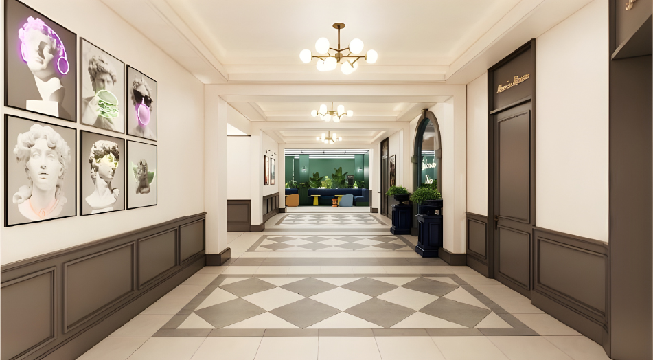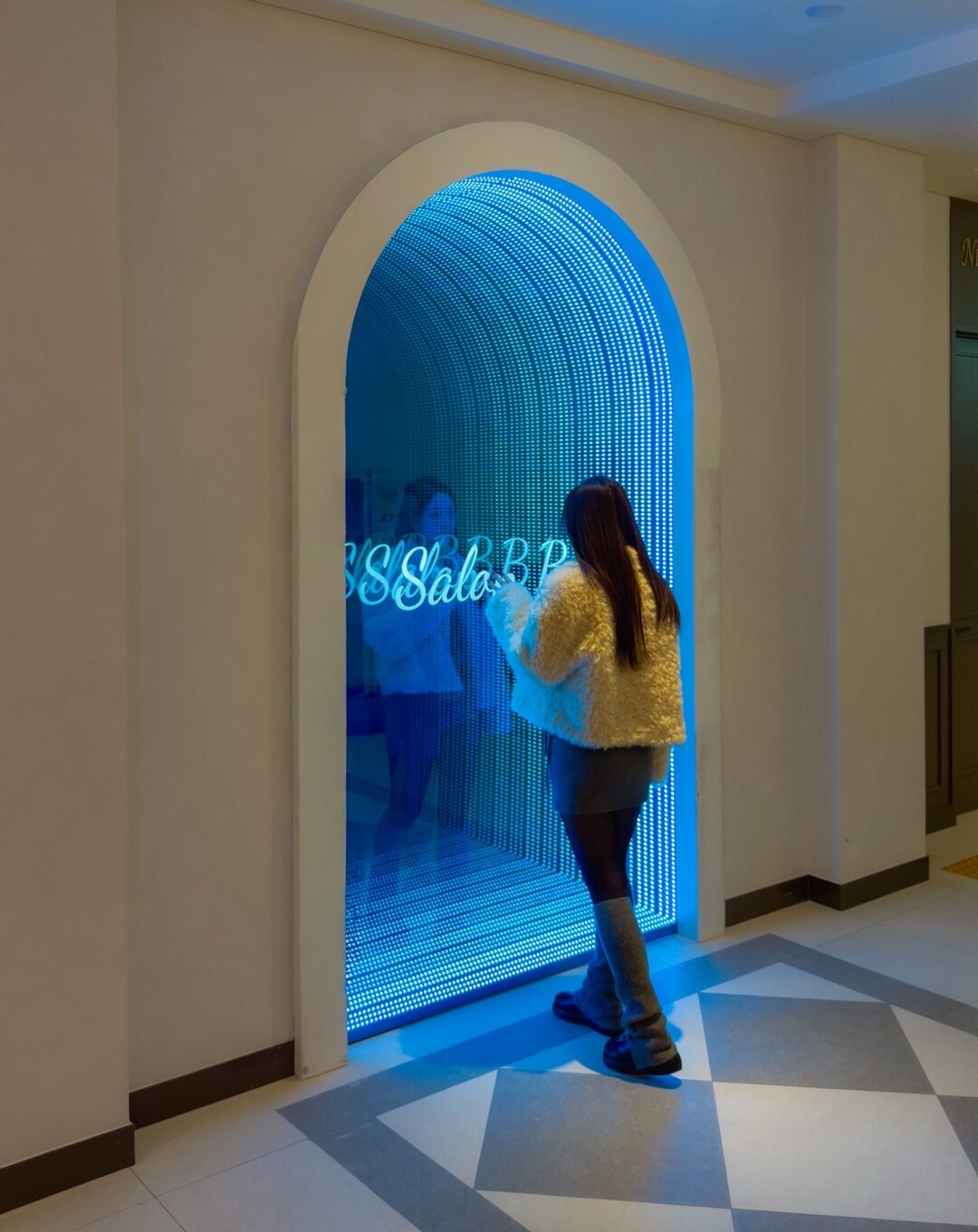 공간 전반에는 ‘살롱 드 이비스(Salon de Ibis)’라는 디자인 콘셉트 아래 유럽 살롱의 우아함과 현대적 감각이 조화를 이룬 인테리어를 적용했다. 아치형 프레임과 체커보드 패턴의 바닥, 그리드 천장과 웨인스코팅 장식 기법에 빈티지 아트워크를 더해 클래식함과 고전적인 감성을 살리고, 인피니티 미러 등을 배치해 공간 곳곳을 MZ세대가 선호하는 ‘포토제닉한’ 장소로 연출했다.