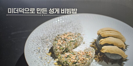 뉴욕 미슐랭 3스타 레스토랑 '일레븐 매디슨 파크'의 부주방장 출신인 송훈 셰프는 '창원 미더덕'이라는 낯선 식재료 앞에서 자신의 기술적 우위를 증명하려 했다. 그는 미더덕이 가진 특유의 바다 향과 오독한 식감을 해체하기로 결심했다. 그의 목표는 미더덕을 최고급 식재료인 '성게알(우니)'처럼 보이게 만드는 것이었다. 그는 미더덕을 갈아 폼을 만들고, 색감을 조절해 성게알의 모양을 빚어냈다. 요리 이름조차 '미더덕으로 만든 성게알'이었다. 접시 위에는 화려한 꽃 장식과 함께 가짜 성게알이 놓였다. 시각적으로는 완벽한 파인 다이닝의 한 접시였다.