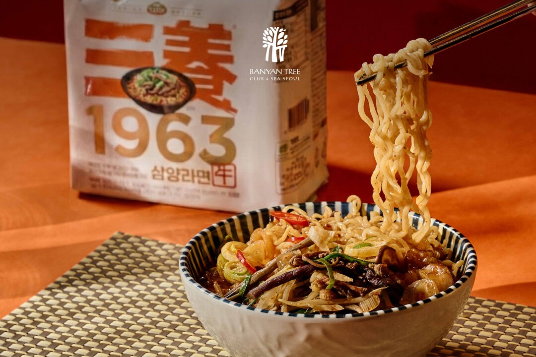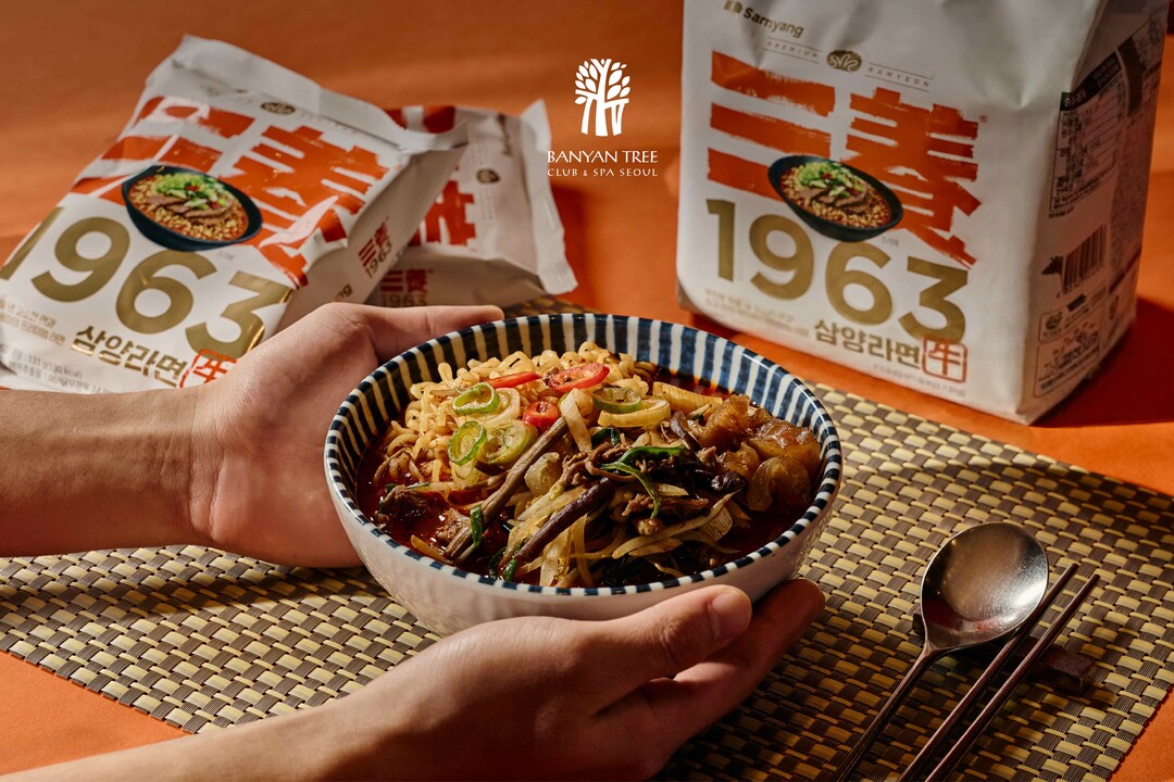 반얀트리 서울 ‘얼큰 양지 라면 by 삼양1963’은 삼양1963을 바탕으로 호텔만의 조리 노하우를 더한 메뉴다. 양지와 스지를 함께 사용해 깊은 국물의 맛과 매콤함의 균형을 살린 것이 핵심이다. 출시 한 달 만에 700만 개 이상 판매되며 품절 사태까지 불러온 화제의 제품을 호텔 셰프 버전으로 경험할 수 있는 특별한 기회다.