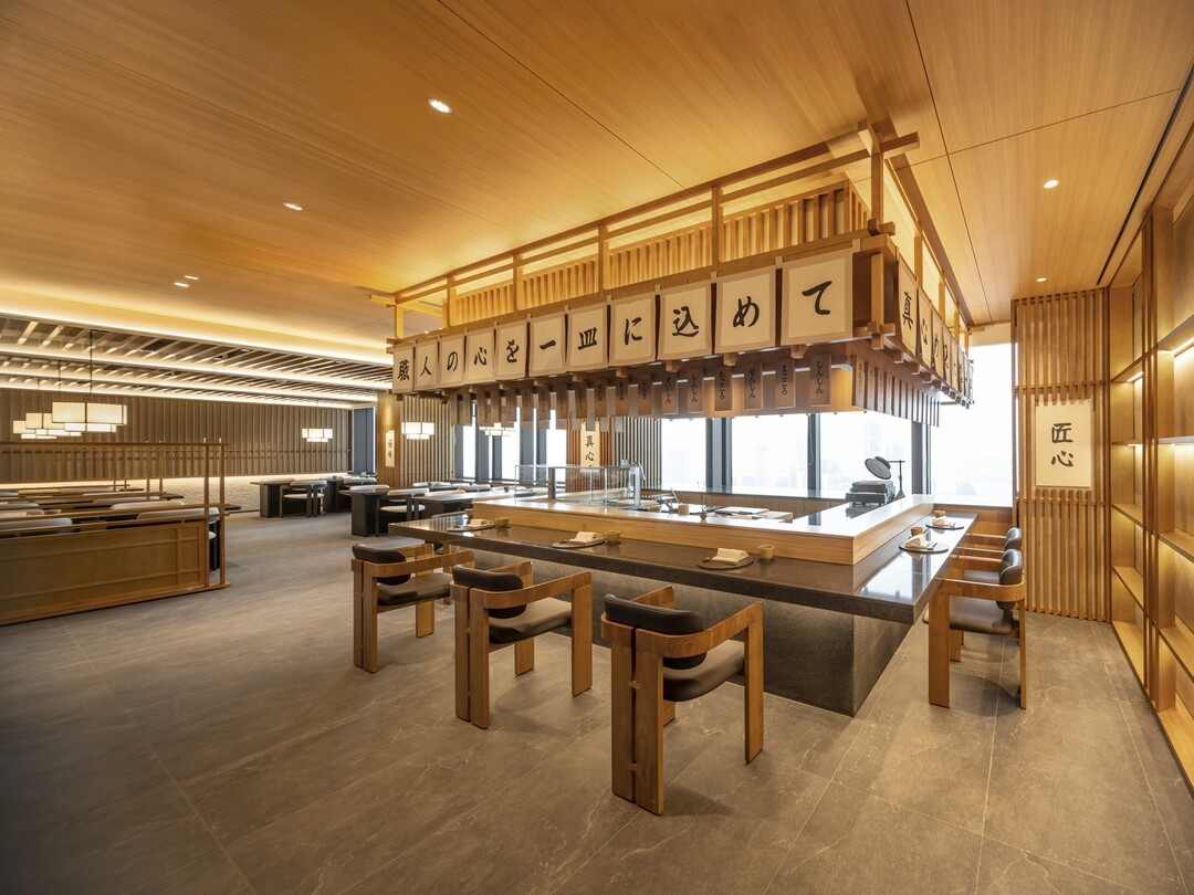‘슈치쿠’는 ‘물의 축제’ 콘셉트에 맞춰 물결 패턴의 대리석과 어두운 톤의 마감재를 적용했다. 스시·갓포 카운터를 통해 셰프의 조리 과정을 바로 눈앞에서 볼 수 있다. ‘백리향’은 ‘꽃의 축제’를 테마로 중국 황실을 연상케 하는 이색 공간에 한강 전망을 갖춘 14개 룸으로 구성됐다.