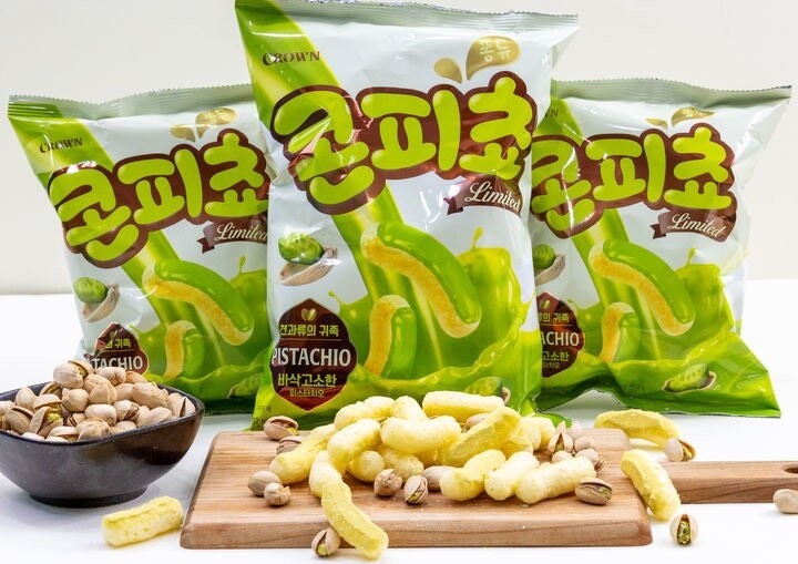 이번에 선보인 ‘콘피쵸’는 단순히 피스타치오 맛을 입힌 제품이 아니라, 구현 방식에서 차별점을 둔다. 기존 스낵은 시즈닝 분말을 통해 맛을 표현하는 경우가 많지만, 콘피쵸는 피스타치오 원물을 갈아 넣은 크림을 더해 견과류 특유의 고소함과 깊은 풍미를 살렸다. 바삭한 옥수수 스낵과 부드러운 크림이 대비를 이루며 기존 콘 시리즈와는 다른 결을 만든다.