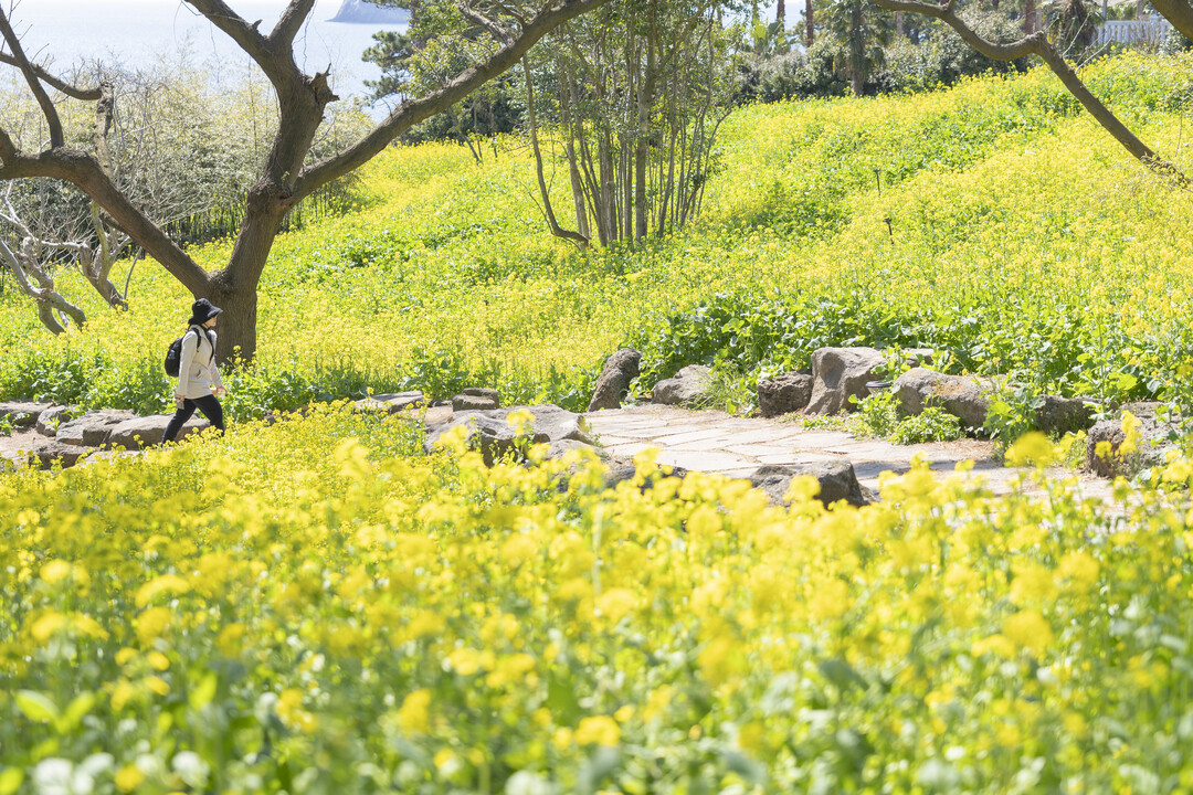 봄철 제주는 유채꽃이 만개하는 계절로, 해안 절벽을 따라 이어지는 제주올레 7코스에서는 푸른 바다와 노란 들판이 어우러진 풍경을 감상할 수 있다. JW 메리어트 제주는 JW 가든과 연결된 제주올레 7코스를 통해 자연과 가까운 산책 경험을 제공하며, 객실에서도 바다와 범섬을 조망할 수 있어 계절의 변화를 가까이에서 체감할 수 있다. 천천히 걷고 머무는 시간은 분주한 일상에서 벗어나 스스로의 호흡에 집중하게 하며, 자연 속에서 온전한 휴식을 경험하도록 돕는다.