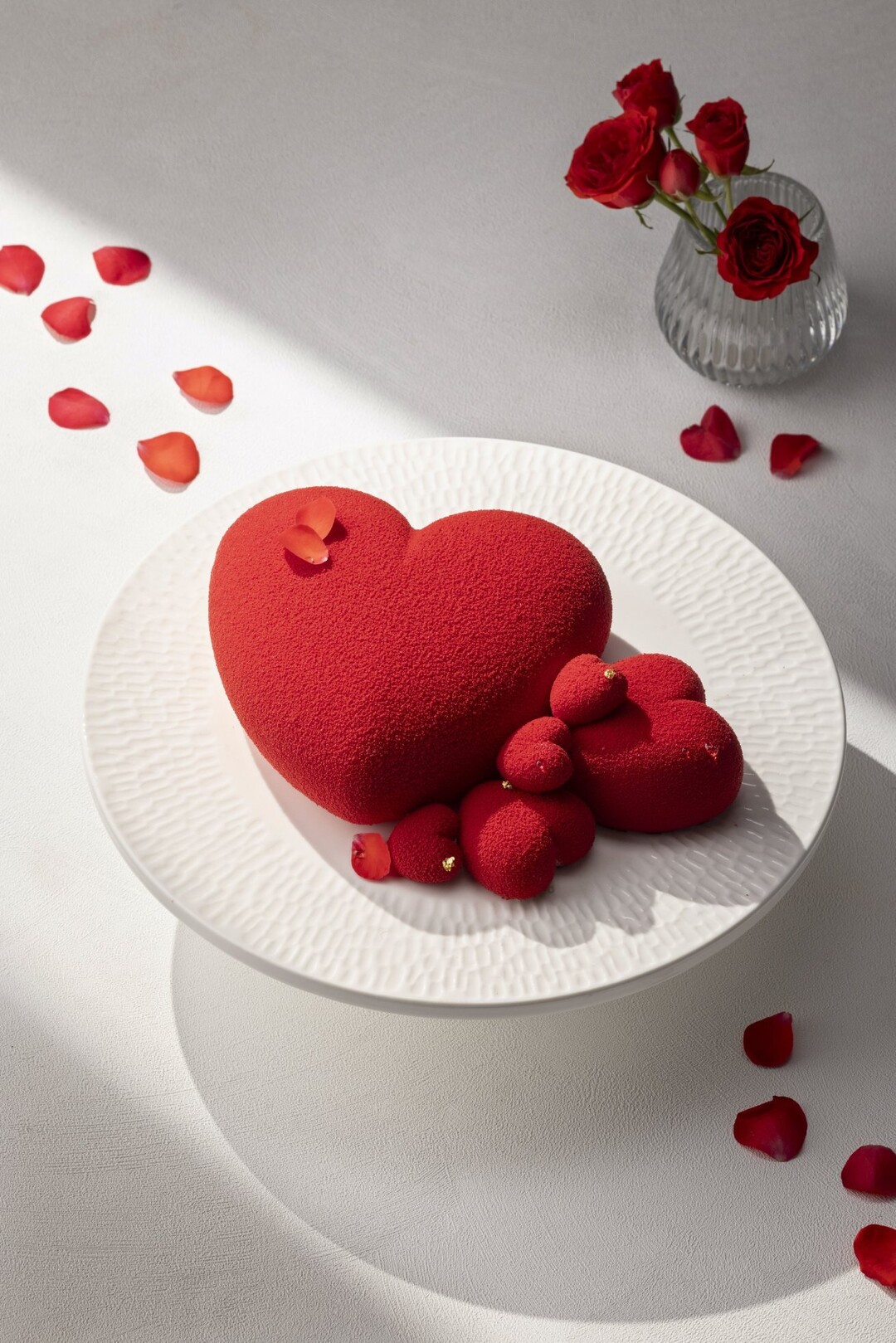 발렌타인 리미티드 에디션 ‘벨벳 하트(Velvet Heart)’ 케이크는 2월 13일, 14일 양일간 카페(Caffe)에서 판매한다. 깊은 레드 컬러의 하트 디자인과 벨벳처럼 보송하고 부드러운 표면이 어우러져, 발렌타인데이에 어울리는 사랑스러운 비주얼을 완성한다.