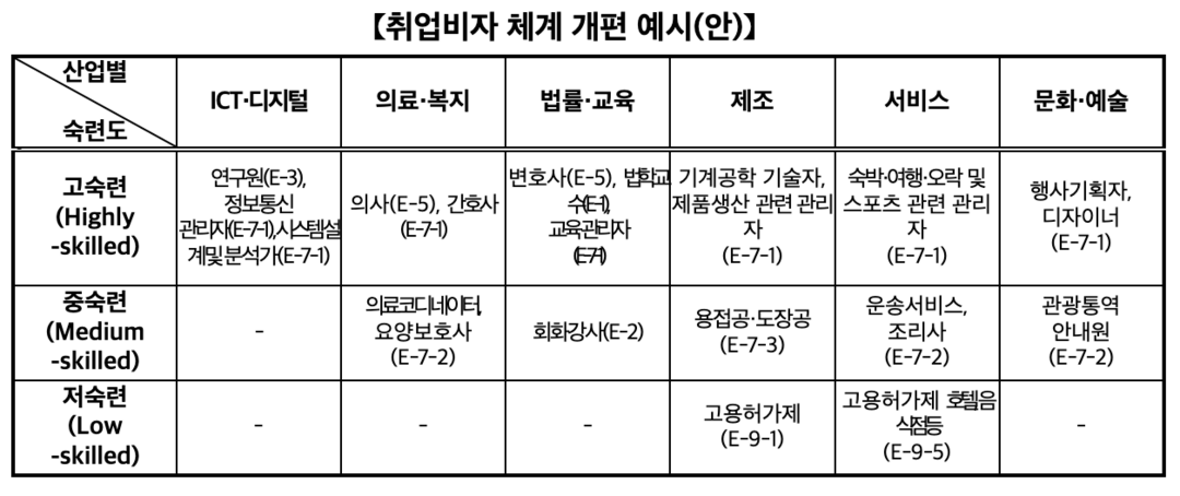 취업비자 체계 개편… 숙련도 중심으로 단순화