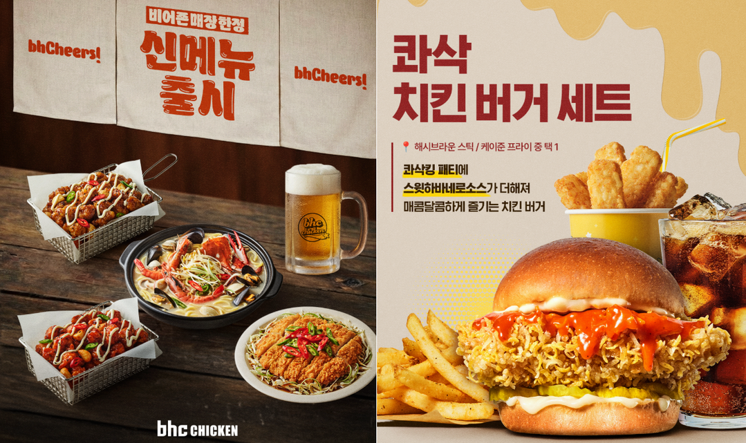 업계 전반에서는 버거 시장 공략도 본격화되고 있다. bhc는 지난 11월 서울 강남구 개포자이스퀘어점에서 치킨버거 3종을 선보이며 점심 수요 확보에 나섰다. 치킨 매출이 주로 저녁 시간대에 집중되기에 낮 시간대까지 매출을 확장하기 위한 선택이다. bhc 비어존에서는 유린기·나가사키 짬뽕 전골·닭똥집 튀김 등 비(非)치킨 메뉴 비중을 확대하며 ‘술상 스페셜 메이트’ 콘셉트도 강화하고 있다.
