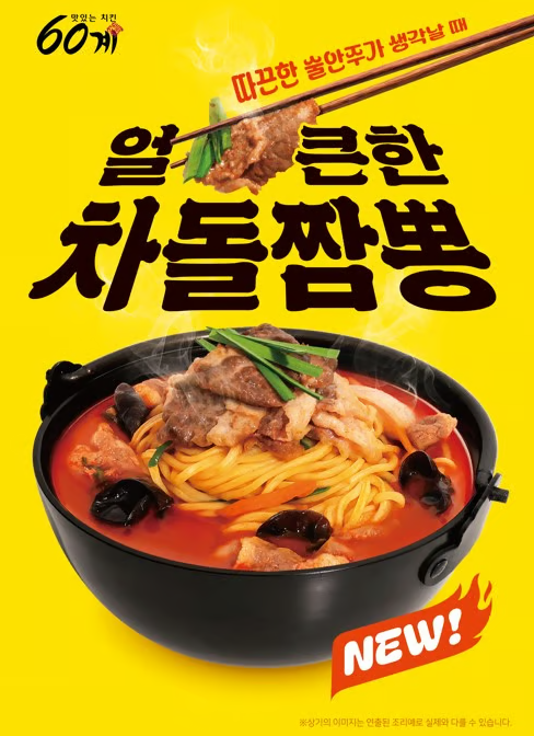 60계치킨은 4일 홀 전용 신메뉴 ‘차돌짬뽕’을 출시하며 치킨 중심의 브랜드 정체성을 과감히 확장했다고 밝혔다. 매콤칼칼한 국물에 차돌을 더해 깊은 맛을 자랑하는 메뉴로, 치킨과의 ‘궁합’을 고려한 술안주형 메뉴라는 점이 특징이다. 배달은 불가하며오직 홀 매장에서만 맛볼 수 있다. 고구마튀김·멘보샤·치즈볼 등을 한 번에 즐길 수 있는 사이드모음 2인·3인 세트도 함께 출시해 매장 내 체류 시간과 객단가를 높이는 전략을 병행한다.