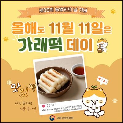 [Cook&Chef = 홍지우 기자] 농촌진흥청(청장 이승돈)은 오는 11일까지 ‘올해도 11월 11일은 가래떡데이!’ 온라인 행사를 진행한다고 5일 밝혔다.