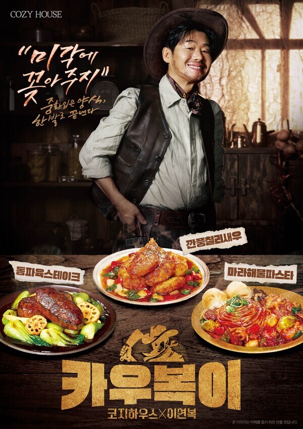 이번 협업을 알리는 광고도 함께 공개됐다. 광고는 코지하우스의 핵심 재료인 소고기(Cow)와 이연복 셰프 이름의 ‘복이’를 결합한 ‘카우복이’ 콘셉트로 제작됐으며, 이연복 셰프가 카우보이로 등장해 소고기와 불쇼 장면을 통해 메뉴의 콘셉트와 조리 포인트를 시각적으로 전달한다.
