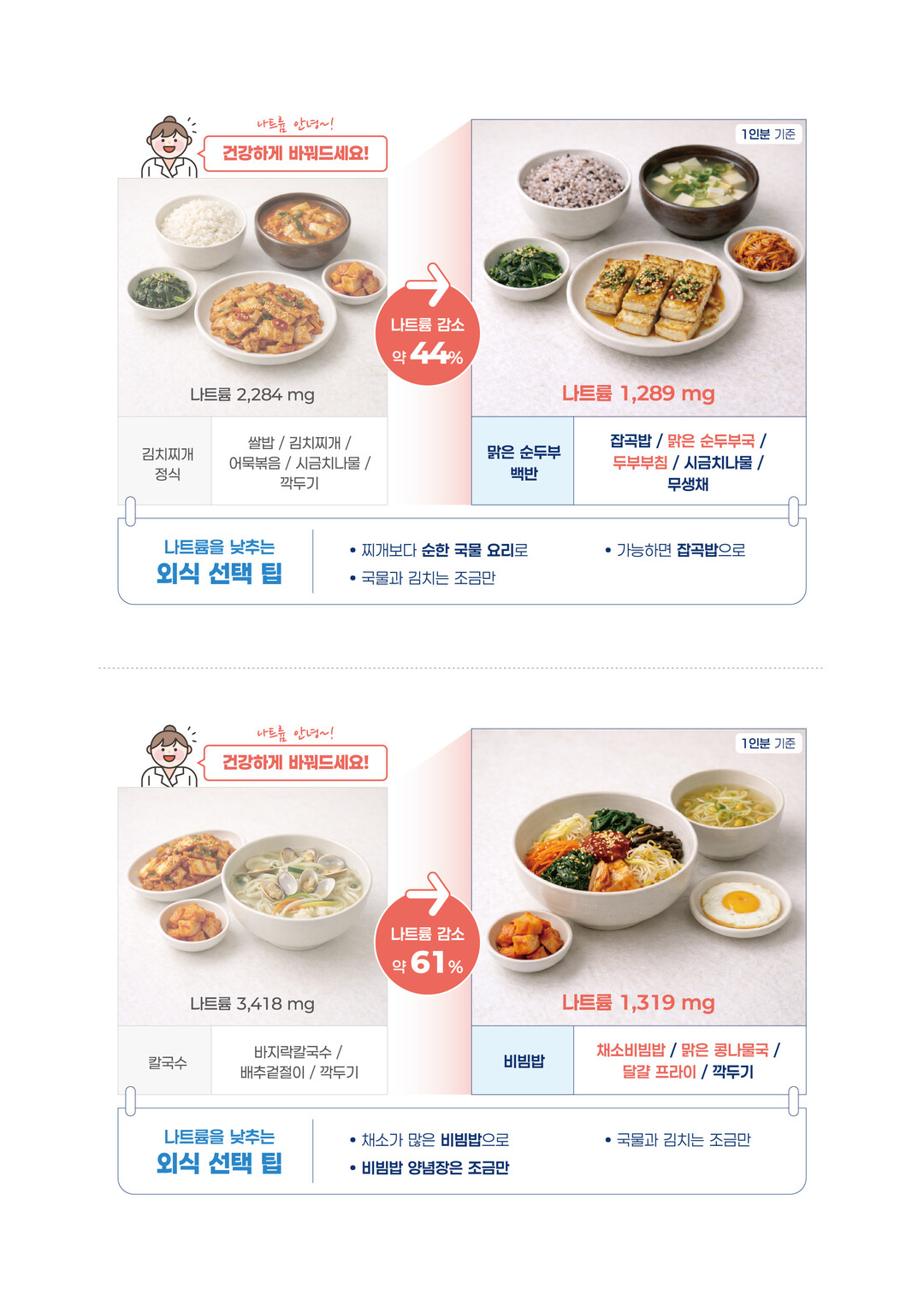 또한 계절 식재료를 활용한 나트륨 저감 식단과 외식·배달·편의점 이용 시 참고할 수 있는 식단 예시를 함께 제시해 일상 속 실천 가능성을 높였다.