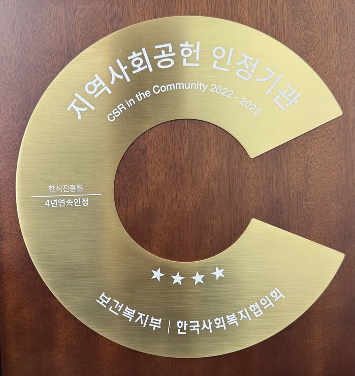 [Cook&Chef = 오요리 기자] 한식진흥원이 4년 연속 지역사회공헌 인정기관으로 선정되었다. 이는 한식의 가치를 전 세계에 전파하고 지역 사회와 협력한 결과다. 한식진흥원은 ESG(환경·사회·지배구조) 원칙에 따라 지역사회 활동을 진행하며 사회적 책임을 강화해 왔다.