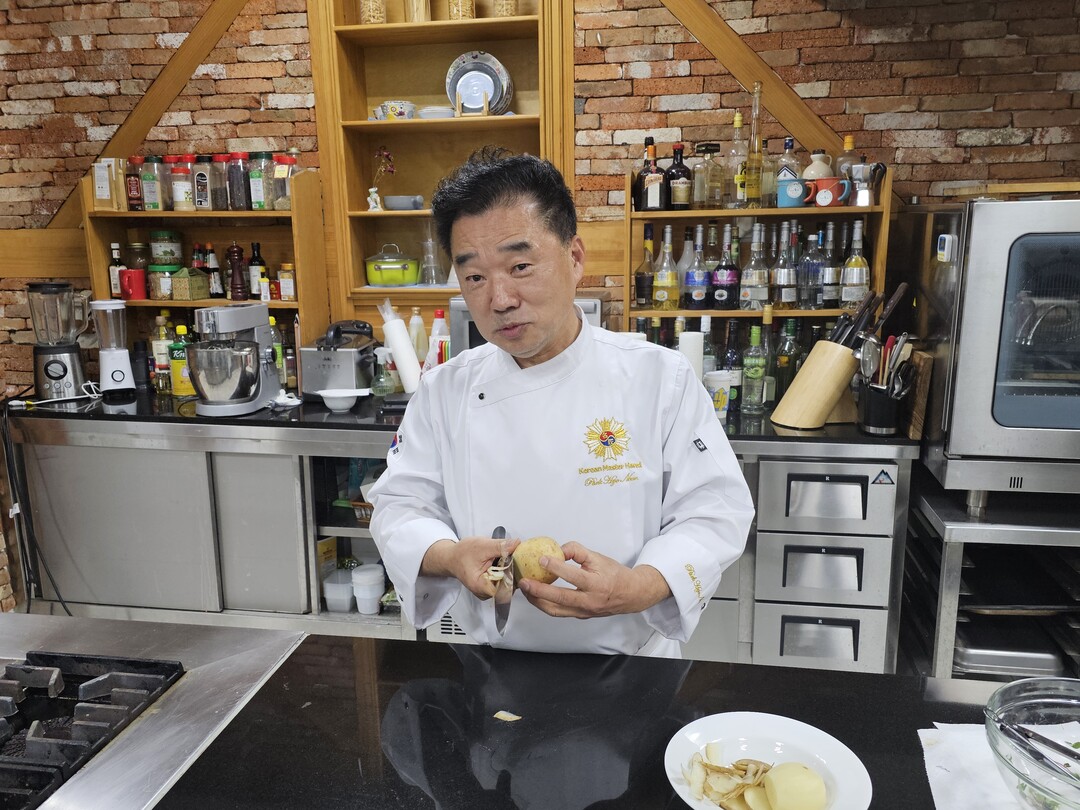 특히 '감자 깎는 모습을 보여달라'는 요청에 따라 정교한 '감자 돌려깎기' 시연을 직접 펼쳐 보이며 명장의 녹슬지 않는 칼솜씨를 증명했다.