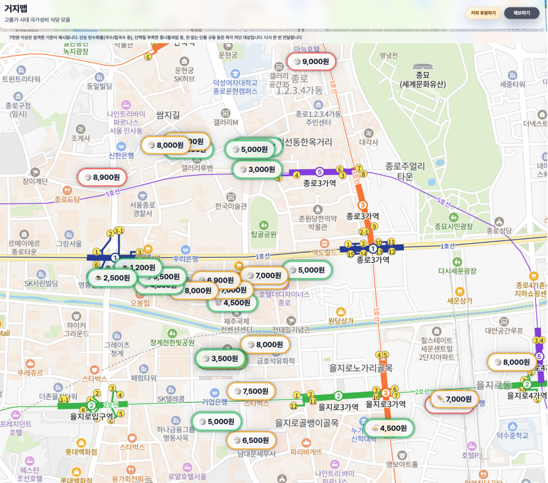 [Cook&Chef = 신현우 전문기자] 최근 SNS를 중심으로 ‘거지맵’이 빠르게 확산되고 있다. 거지맵은 초저가 식당 정보를 지도 형태로 공유하는 온라인 플랫폼으로, 수천 원대 메뉴를 판매하는 식당들을 중심으로 위치와 가격, 메뉴 정보를 이용자들이 직접 등록하고 공유하는 구조를 가진다. 일정 가격 이하 식당만 선별해 보여주는 기능과 커뮤니티 기반 정보 확산 구조를 통해 빠르게 이용자가 늘어나고 있으며, 고물가 상황 속에서 ‘저렴한 한 끼’를 찾는 소비자들의 수요와 맞물리며 주목받고 있다. 단순한 정보 플랫폼처럼 보이지만, 이 현상은 외식 소비 구조의 변화를 상징적으로 보여주는 사례로 평가된다.
