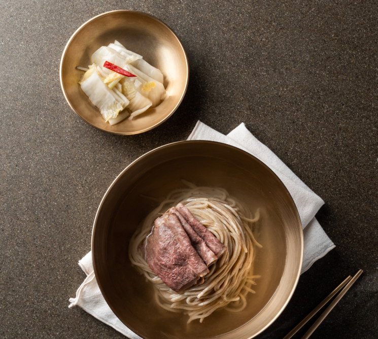 특히 한우찬면은 메밀이 아닌 밀로 만든 면에 한우 암소 육수와 동치미를 더해 기존 냉면과는 다르다. 부드럽게 끊어지는 면발과 고소한 곡물 향, 과하지 않은 찬 육수의 조합은 분명히 새롭다. 넙적고사리면과 오색나물면은 된장과 들깨기름, 제철 나물을 중심으로 구성돼 사찰음식을 연상시키면서도 파스타처럼 맛볼 수도 있다.