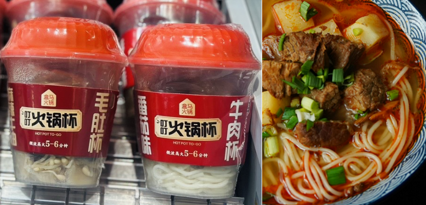 최근 중국에서는 이 ‘컵 분식’의 진화형으로 불릴 만한 ‘컵훠궈’가 새로운 시장을 열고 있다. 알리바바그룹의 프리미엄 유통 브랜드 허마(盒马)는 훠궈 시즌을 맞아 전자레인지에 데우기만 하면 완성되는 1인용 간편식 ‘띵띵 훠궈 컵(叮叮火锅杯)’을 출시했다. 마라소기름 천엽, 토마토 소고기, 똠얌꿍 새우, 구이저우 솬탕 채소 등 4가지 메뉴로 나왔다. 전통 훠궈를 컵 하나에 담아낸 이 제품은 중국의 젊은 직장인 사이에서 폭발적인 인기를 끌고 있다.