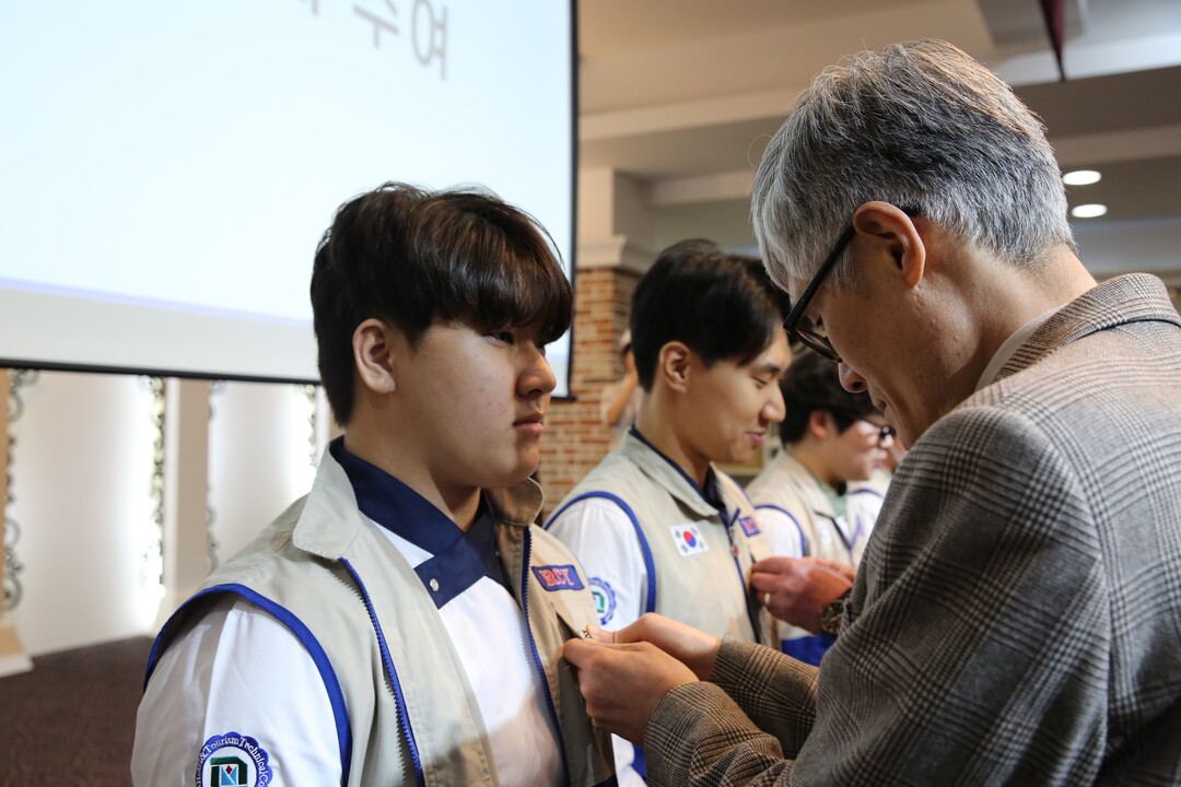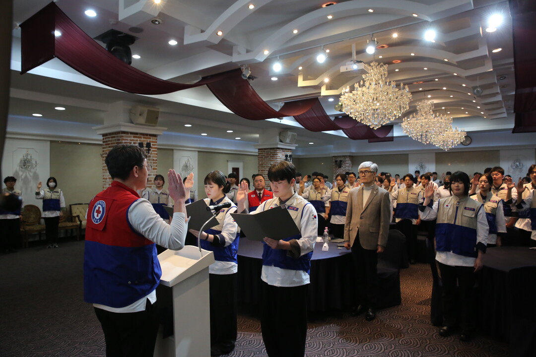 [Cook&Chef = 조용수 기자] 한국호텔관광실용전문학교(이하 호텔학교 한호전)는 4월 2일 목요일에 미래관 컨벤션홀에서 신규 단원 입단식을 개최하며 나눔과 봉사의 가치를 실천하는 의미 있는 시간을 가졌다. 이번 입단식은 RCY의 기본 이념인 인도주의 정신을 바탕으로 학생들이 봉사활동의 중요성을 이해하고, 책임 있는 사회 구성원으로 성장할 수 있도록 마련됐다. 행사에는 대한적십자사 경기도지사 관계자와 한호전 재학생을 비롯해 학교 관계자 및 지도교수 등이 참석해 신규 단원들의 첫 출발을 함께 축하했다.