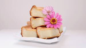 이 디저트의 핵심은 찹쌀 전분이다. 일반 밀가루 케이크는 글루텐 구조를 통해 부드러운 조직을 만든다. 그러나 버터모찌는 찹쌀의 아밀로펙틴이 열을 받으면서 강한 점성과 탄력을 형성한다. 그 결과 겉은 케이크처럼 구워지지만 내부는 모찌처럼 쫀득한 식감이 된다.