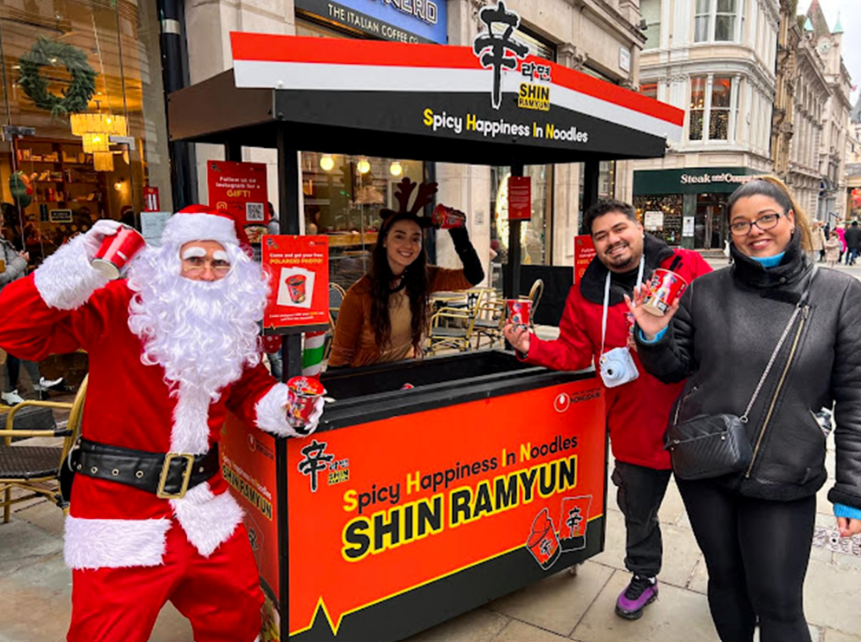 현장 체험형 마케팅도 병행한다. 농심은 ‘신라면 카트’를 운영하며 SNS 팔로우 이벤트를 진행하고, ‘케이팝 데몬 헌터스’ 캐릭터가 디자인된 신라면컵을 증정한다. 또한 피카딜리 서커스를 배경으로 신라면과 함께 촬영하는 폴라로이드 이벤트를 마련해 현지 소비자들에게 브랜드 경험을 제공한다.