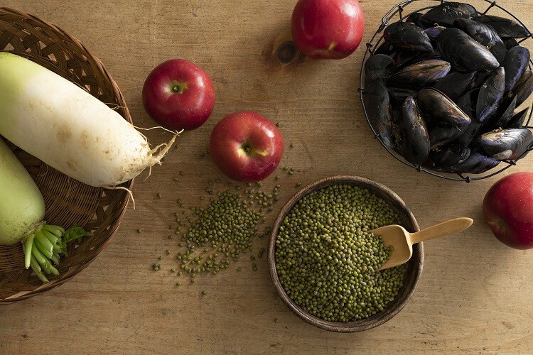 셋째, 몸의 균형을 맞춘다. 녹두처럼 해독을 돕는 음식과 고등어처럼 기름기를 보충하는 음식이 함께 조화를 이루며 ‘보위(保衛)’ 즉, 몸을 지키는 음식철학을 완성한다.
