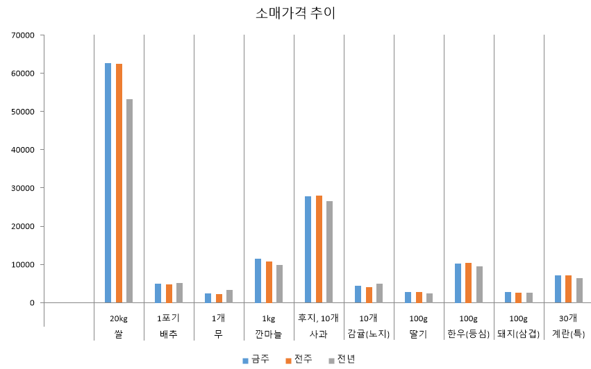 1월 중점관리 품목의 소매가격 추이(1월 9일 기준/한국농수산식품유통공사 조사). 사진 = 쿡앤셰프 제작