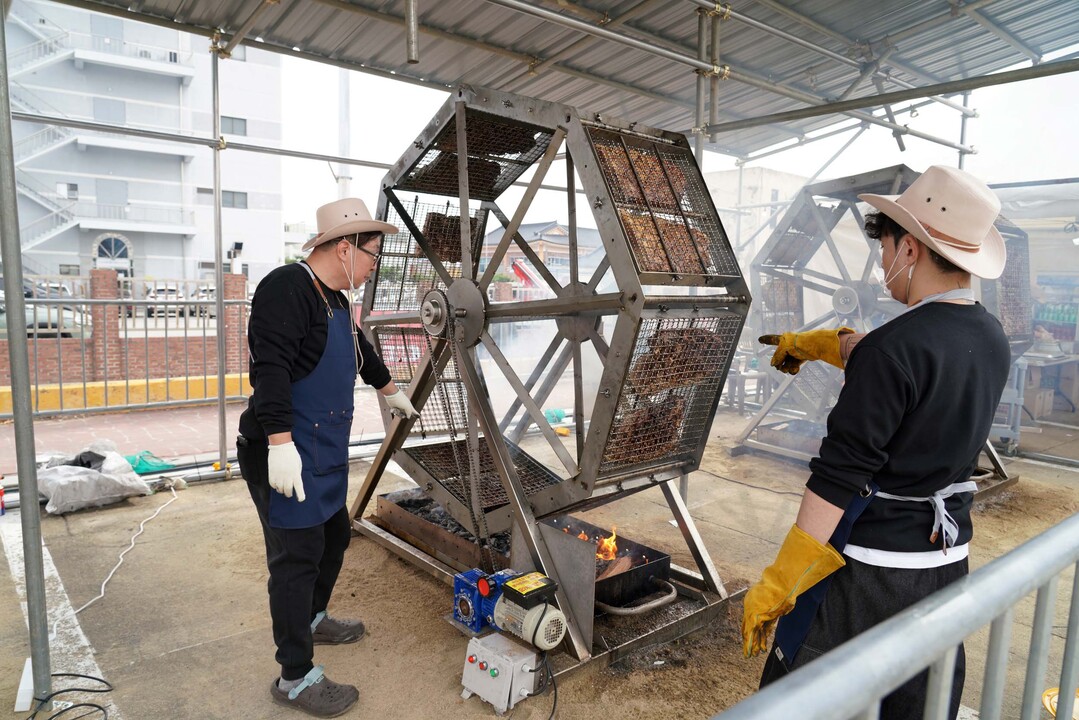 자체 바비큐 장비로 고기 굽는 모습. 사진 = 홍성군