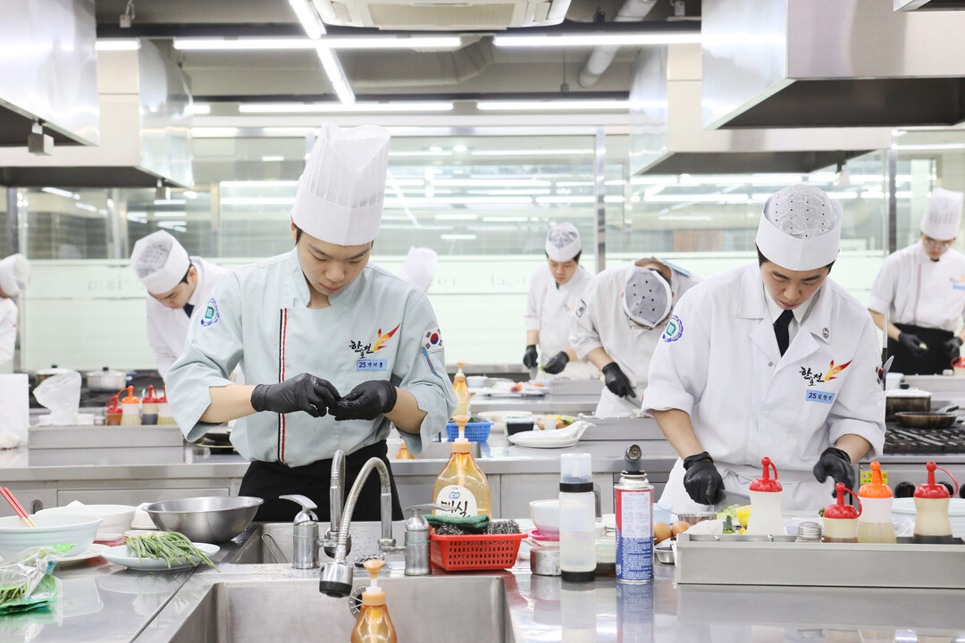 [Cook&Chef = 마종수 기자] 한국호텔관광실용전문학교(이하 한호전) 호텔조리학과정은 취업에 특화된 실무 실습 위주의 커리큘럼으로 유명하다. 중식 마스터 이연복 교수, 일식 마스터 정호영 교수를 포함한 현장에서 수십년간 경력을 가지고 있는 교수들의 체계적인 실무 위주 수업이 이루어 지며 1:1 교수 전담제를 통하여 학생들의 맞춤 진로 가이드를 제시하고 취업으로 이끌어 가기 때문이다. 정규 커리큘럼을 넘어서 다양한 전문교육과 인턴십을 통해 졸업을 하게 되는데, 기본 정규 커리큘럼 외에 팀프로젝트학기제나 고급레스토랑 경영 실습, 분야별 현잔 전문가를 초청 강의, 호텔 현장 실무 실습을 진행하게 되며 식품영양학과대학에서 배울수 있는 이론적인 공부도 같이 배울수 있게 된다. 또한 요리학교 한호전 호텔조리학과정 학생들은 재단과 협력 및 취업연계가 되어 있는 다양한 특급호텔과 대형외식기업 및 리조트 등으로 인턴쉽을 나가게 되고 학생들을 현장에 나갈 준비를 마치게 된다.