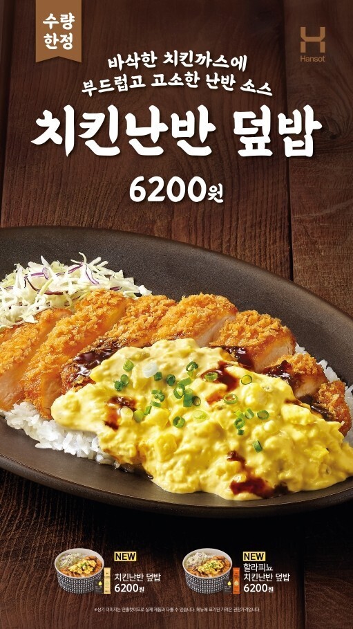 [Cook&Chef = 김세온 기자] 국내 대표 도시락 프랜차이즈 한솥도시락이 혼자서도 건강한 식사를 즐기는 ‘혼웰식(혼밥+웰빙)’ 트렌드를 반영한 신메뉴 ‘치킨난반 덮밥’ 2종을 출시했다고 2일 밝혔다.