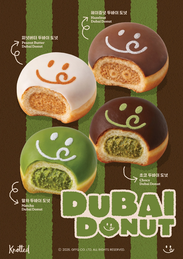 이번에 추가 출시되는 신메뉴는 △헤이즐넛 두바이 도넛 △피넛버터 두바이 도넛 등 2종이다. ‘헤이즐넛 두바이 도넛’은 통헤이즐넛과 헤이즐넛 카다이프를 조화롭게 담아 깊고 진한 풍미를 강조했다. ‘피넛버터 두바이 도넛’은 고소한 피넛버터 카다이프를 가득 채운 뒤 화이트 초코 코팅으로 마무리해 부드럽고 달콤한 맛의 균형을 살렸다.