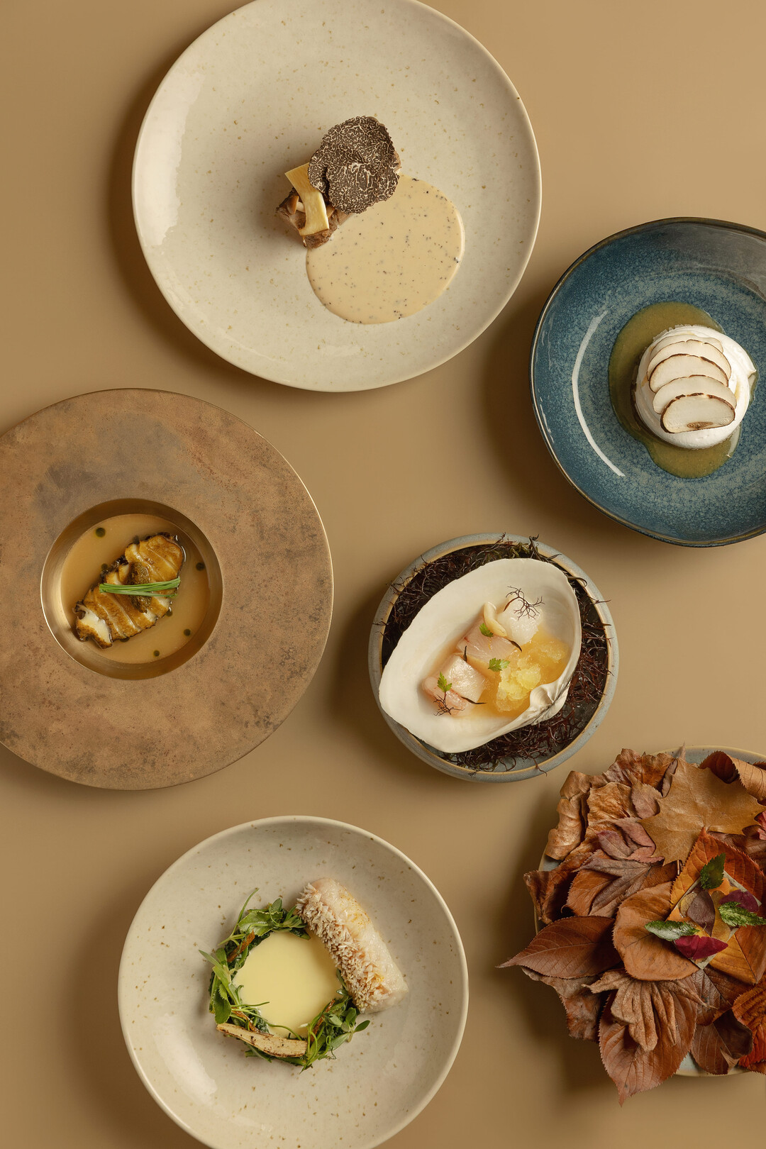 메뉴는 한우 채끝등심에 은은한 당귀 향을 더한 ‘잎’, 제철 방어와 독도새우, 가리비로 구성된 ‘물회’, 옥돔과 상큼한 유자가 조화를 이루는 ‘생선’, 전복과 돼지국밥의 깊은 감칠맛을 담은 ‘전복’, 부드러운 꽃갈비살에 트러플을 곁들인 ‘갈비’, 표고버섯과 대추가 어우러진 ‘버섯’으로 마련된다. 특히 전복·갈비·버섯에서는 네스프레소 커피의 풍부한 아로마가 더해져 식재료의 풍미를 한층 끌어올리며, 버섯을 제외한 모든 메뉴에는 전통주 페어링이 함께 제공되어 미식의 깊이를 극대화한다.