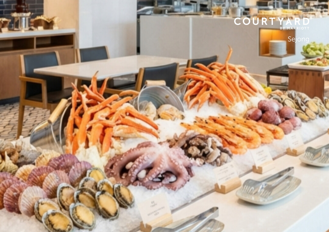 주중 저녁 뷔페에서는 아이스 베드 위에 담아낸 프리미엄 시푸드를 비롯해, 삼나무에 구운 연어, 해산물 빠삐요트, 방어 세비체, 신선한 회와 초밥, 로스트 비프, 그릴 스테이션, 수제 디저트까지 다양한 요리를 한 자리에서 즐길 수 있다. 주말 저녁 뷔페는 한층 더 풍성한 라인업으로 구성되며, 전복 숙회, 새우 터미도어, 쇠고기 갈비찜 등이 추가된다. .