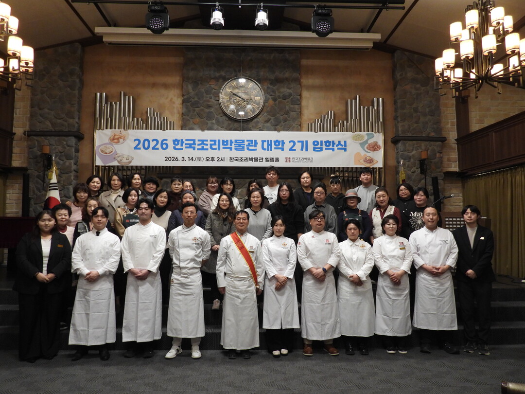 [Cook&Chef = 신현우 전문기자] 한국조리박물관(관장 최수근)은 지난 3월 14일(토) 한국조리박물관 엘림홀에서 ‘2026 한국조리박물관 대학’ 입학식을 진행하였으며, 음식문화 강의와 조리 실습이 함께 운영되는 식문화 교육 과정을 시작했다고 밝혔다.