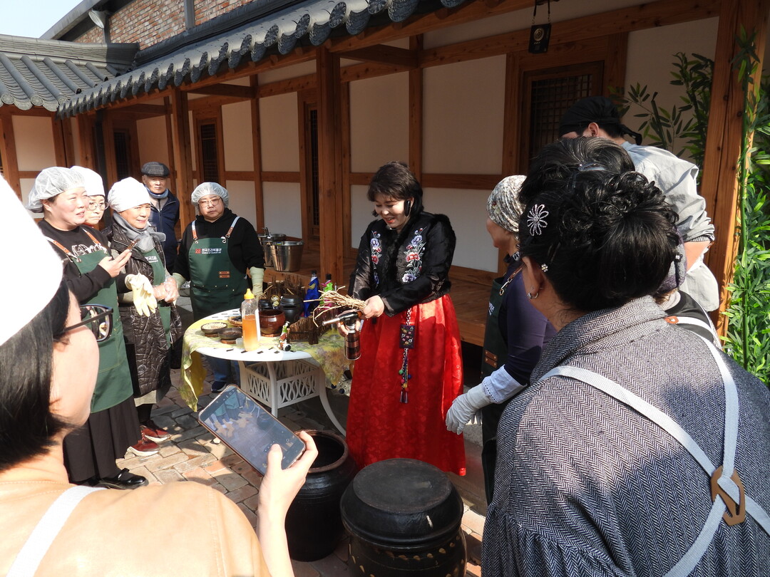 입학식 이후 진행된 첫 강의에서는 김언정 본부장(경희대학교 조리외식경영학과 박사)의 한국 전통 장(醬) 문화와 발효 음식의 역사를 주제로 특강이 열렸다. 강의에서는 조선시대 생활서인 『산림경제』와 『규합총서』 등에 기록된 장류 제조법과 장독 관리 방법이 소개되었고, 전통 방식으로 숙성된 메주를 사용하여 전통 장 담그기 과정을 직접 실습했다.