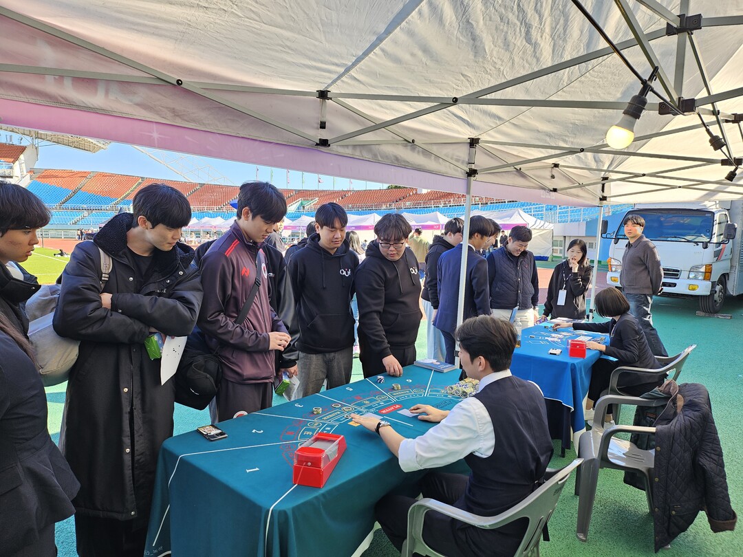 한국호텔관광전문학교(이하 한호전) 호텔카지노딜러과가 지난 11월 1일 안산 와~스타디움 주경기장에서 안산시와 관내 5개 대학들이 참여한 '2025 제3회 안산유니온페스티벌' 행사 체험 부스 진행을 했다고 밝혔다.