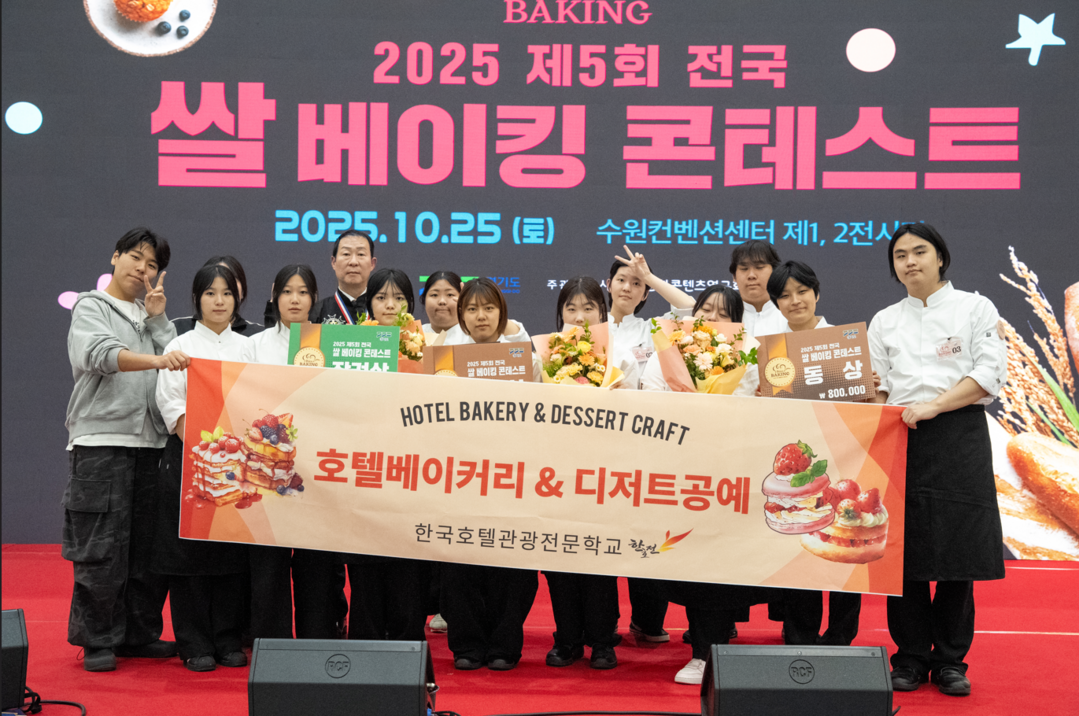 [Cook&Chef = 안정미 기자] 호텔학교 한호전 호텔베이커리&디저트공예과가 10월 25일 수원컨벤션센터에서 열린 ‘2025 제5회 전국 쌀 베이킹 콘테스트’에서 동상 2개와 장려상 1개를 거두며 쾌거를 이뤘다. 모든 출품작은 경기쌀 100%를 사용했으며, 품종 특성에 최적화한 배합과 공정 제어로 심사위원단의 높은 평가를 받았다. 이번 성과는 현장 밀착형 실습 교육의 결과물로, 제과제빵학과·제과제빵과·제과제빵과대학 진학을 준비하는 수험생들에게도 의미 있는 지표가 됐다.