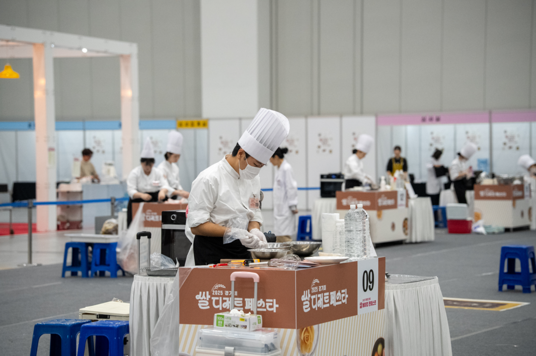 제 5회 전국 쌀 베이킹 콘테스트는 지역 쌀의 활용성과 베이커리·디저트 분야의 기술 저변을 넓히기 위해 마련된 대회로, 참가팀들은 각종 디저트·빵 카테고리에서 창의성과 기술 완성도를 겨뤘다. 한호전 장우혁 교수는 “수화 시간·전분 호화 온도·오븐 상대습도를 미세 조정해 텍스처와 볼륨을 안정화했다”며 “쌀 특유의 깔끔한 단맛과 향을 살리는 방향으로 배합을 설계했고, 정제당 저감·식이섬유 보강·발효 스타터로 풍미와 영양을 동시에 잡았다”고 밝혔다. 덧붙여 “지역 곡물의 잠재력을 디저트 언어로 번역하는 교육·연구가 성과로 이어졌다”며 “경기쌀 표준 레시피 공개를 통해 로컬 농가와 상생 모델을 확장하겠다”고 말했다.