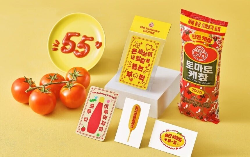 오뚜기는 케챂 출시 55주년을 맞아 이 시간을 기념하는 방식으로 ‘2026 행운 굿즈 팩’을 준비했다. 이번 굿즈는 행운 카드 1종과 스티커 2종으로 구성됐으며, 케챂을 계란 요리 위에 짜서 글자를 쓴 듯한 이미지를 형상화한 ‘케챂 드로잉 폰트’와 브랜드를 상징하는 옐로우 컬러를 중심으로 디자인됐다.