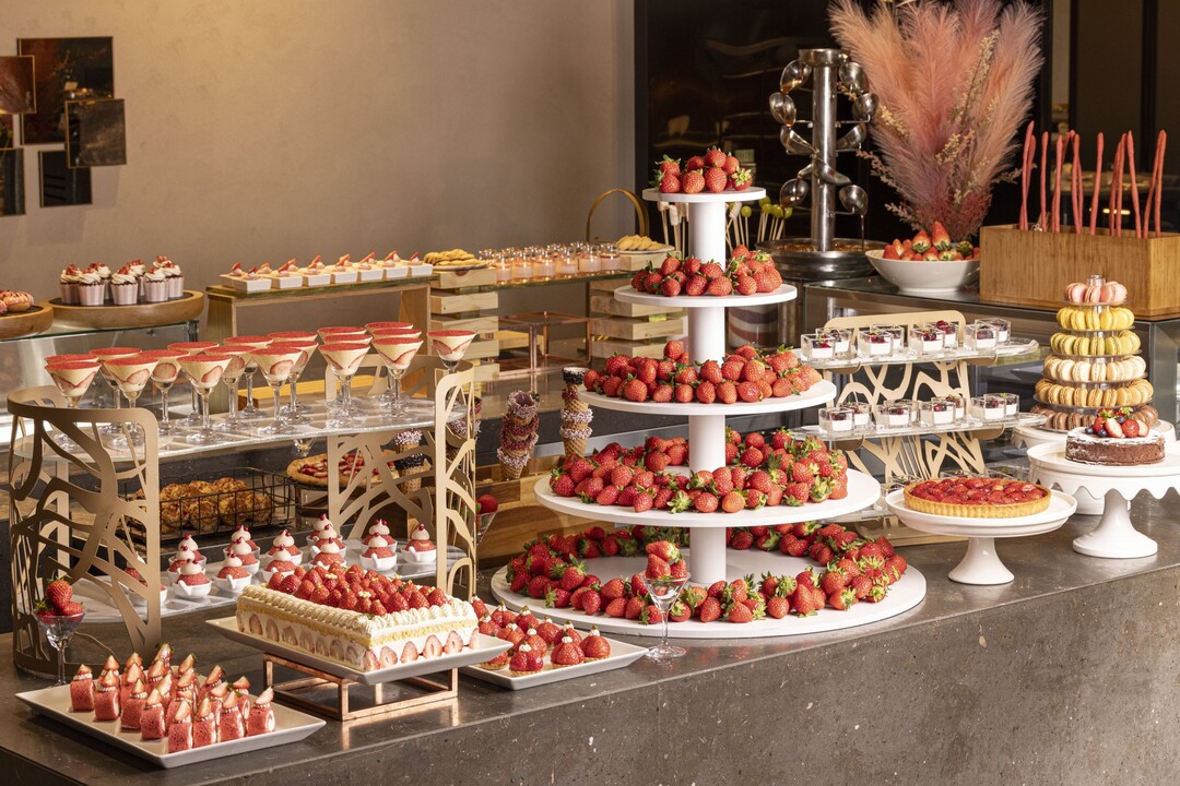데메테르(Demeter)는 페스티브 시즌 동안 디저트 코너를 ‘딸기 뷔페’로 특별 운영해 연말의 분위기를 한층 풍성하게 완성한다. 대형 딸기 타워를 중심으로 딸기 생크림 케이크, 레드 벨벳 케이크, 딸기 타르트, 마카롱 타워, 마들렌 등 겨울 한정 딸기 디저트를 다채롭게 선보이며, 특히 제철 딸기와 아이스크림, 다양한 토핑을 활용해 ‘나만의 딸기 아이스크림 콘’을 직접 만들어볼 수 있는 DIY 아이스크림 섹션을 운영해 어른과 아이 모두에게 색다른 체험형 즐거움을 제공한다.