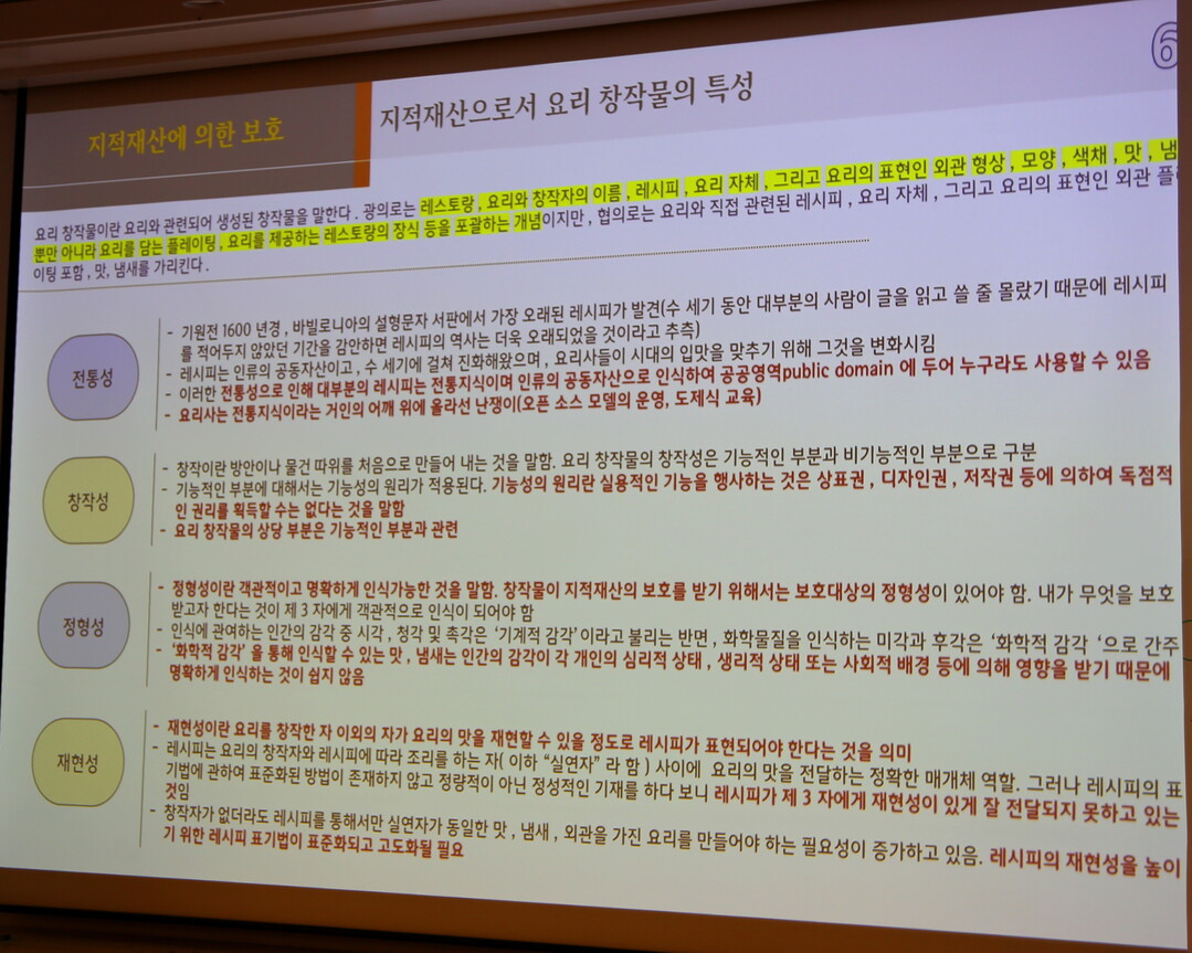Q. 현장에서는 "레시피는 법적 보호가 불가능하다"는 인식이 팽배합니다. 셰프들이 좌절하는 지점이죠. 정말 요리 창작물은 법으로 보호하기 어려운가요?