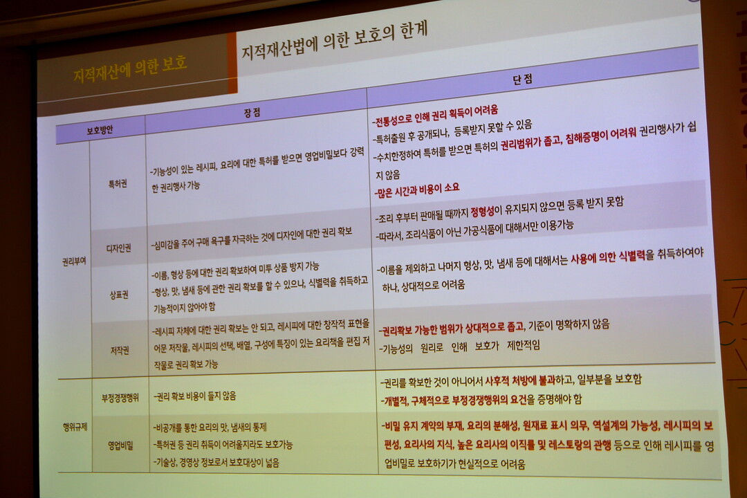 Q. 셰프들이 가장 많이 의지하는 것이 '영업비밀(營業祕密)'입니다. "며느리도 모른다"는 식의 '손맛'이나 '비법 소스' 같은 것들 말입니다. 이마저도 법적으로는 한계가 명확하다고요.