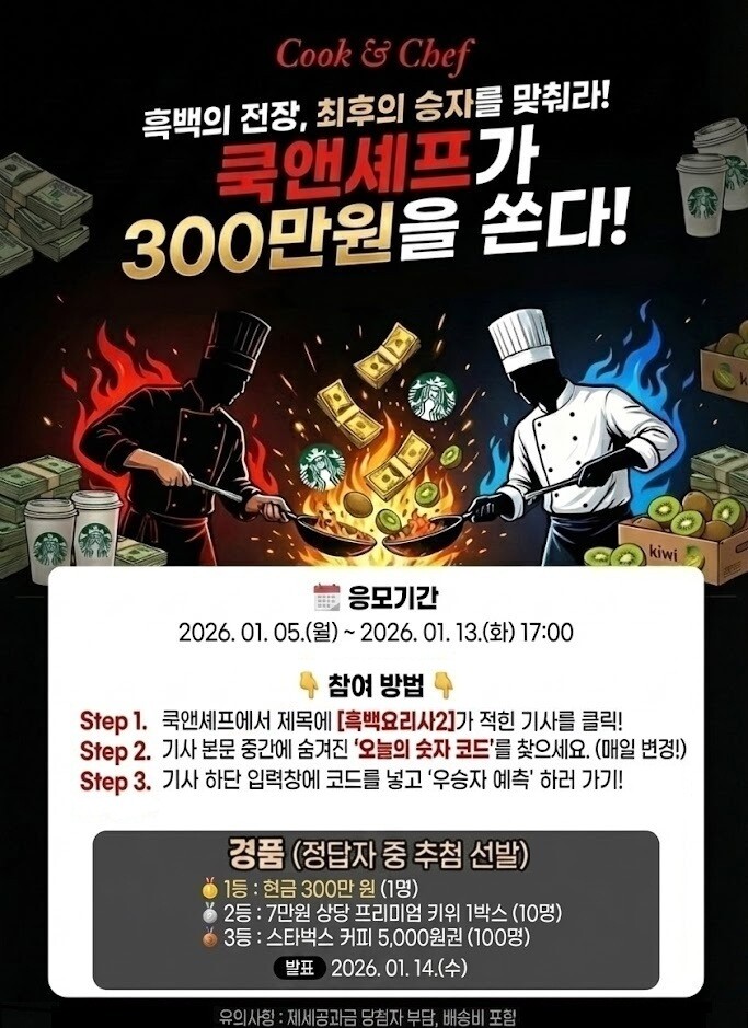 Step 1. 쿡앤셰프에서 제목에 [흑백요리사2] 말머리가 붙어 있는 기사를 클릭해 주세요.