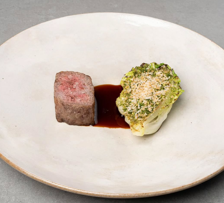 메인 요리는 로메인 상추에 로메인의 껍질을 가볍게 태워 만든 다대기를 버무린 녹색 김치를 곁들인 한우 채끝 등심 스테이크로 고기의 풍미가 강렬한 인상을 남기고 맥주 또는 와인과도 잘 어울린다. 곁들이는 반찬은 계절별로 달라진다.