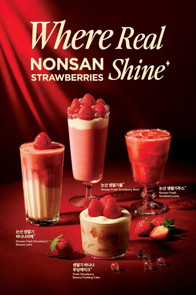 이번 시즌 라인업은 음료 3종과 디저트 1종으로 구성된다. ‘논산 생딸기 주스’는 제철 생딸기를 그대로 갈아 넣어 원물의 신선함을 전면에 내세웠다. ‘논산 생딸기바나나라떼’는 딸기의 산뜻함에 바나나의 달콤하고 부드러운 맛을 더해 누구나 부담 없이 접근할 수 있는 조합으로 기획됐다.