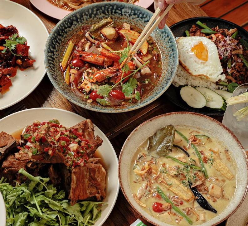새우 팟타이는 달콤짭짤한 소스에 새우의 식감이 살아 있고, ‘팟 카파오 무’는 다진 돼지고기와 바질, 매콤한 양념이 어우러져 태국 특유의 달고 짜고 매운 맛을 직관적으로 전한다. 똠얌꿍, 그린커리, 카오팟 똠얌 같은 국물 요리들은 허브와 향신료가 잘 살아있다. “태국보다 더 태국 같다”는 말이 과장이 아니다.