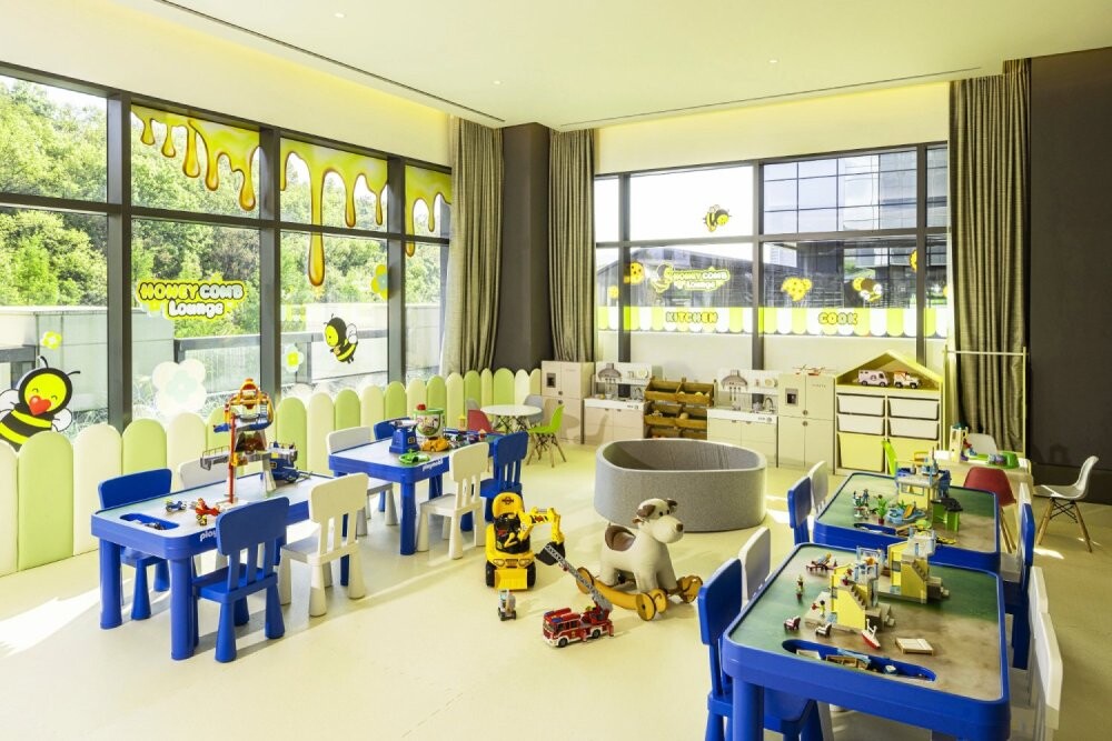 허니콤 키즈 라운지는 친환경·지속가능 철학을 담은 ESG 앰버서더 ‘Bee Happy’ 꿀벌 캐릭터를 모티브로 한 국내 유일의 테마 키즈 공간으로, 벌집에서 영감을 얻은 디자인 속에 정글짐·미디어 아트 볼풀·원목 교구존 등 다양한 체험형 콘텐츠를 갖추고 있다. 아이들은 마음껏 뛰놀며 창의력을 키울 수 있고, 보호자를 위한 전용 공간 ‘맘스 라운지(Mom’s Lounge)’도 마련돼 아이들이 노는 동안 부모도 편안한 휴식을 즐길 수 있다. 또한 경쾌하고 발랄한 색감과 캐릭터로 주목받는 라이징 아티스트 박세연 작가의 작품이 전시돼 라운지에 유쾌하고 밝은 에너지를 더한다.