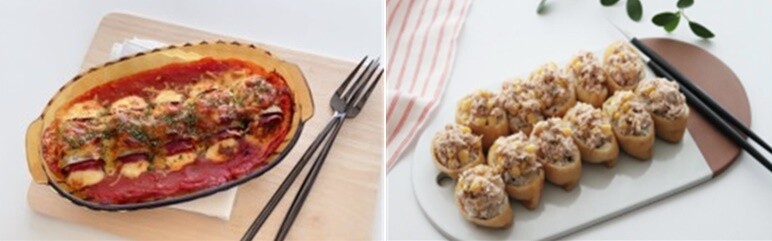 우선 첫 번째 요리인 ‘어묵 인볼티니(Involtini)’는 사각 어묵에 리코타 치즈와 시금치를 넣고 돌돌 말아 토마토소스와 함께 오븐에 구운 요리로 이탈리아 가정식의 따뜻한 풍미 속에 한국 어묵의 쫀득한 식감을 더한 것이 특징이다.