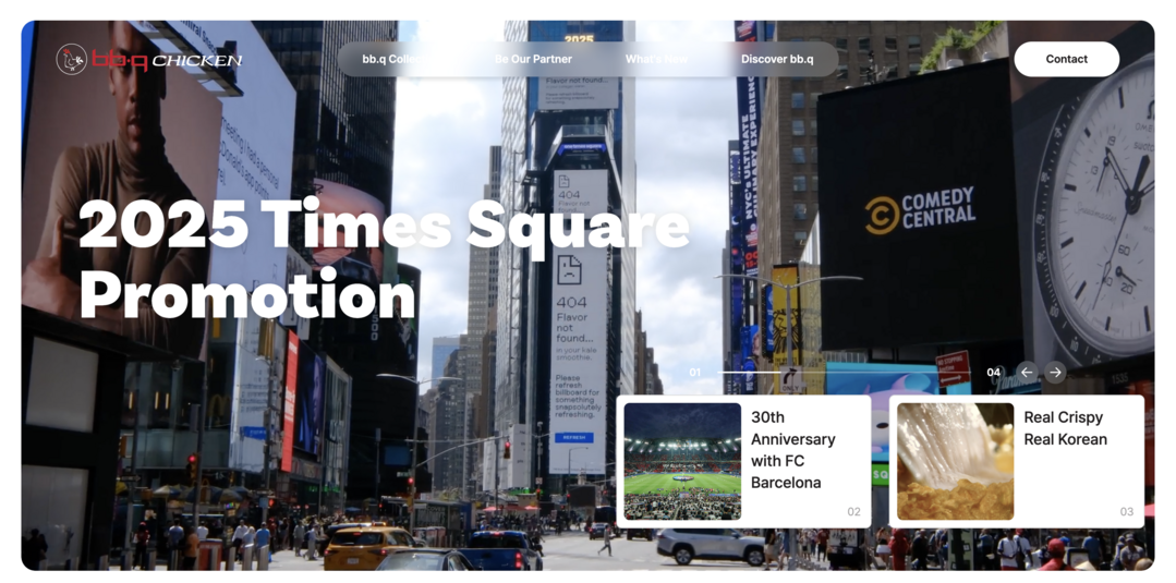 (1) BBQ: “스포츠와 문화를 점령하라” (Scale & Culture) ‘국가대표 치킨’을 표방하는 BBQ는 가장 공격적이다. 2025년 하반기 기준 57개국 700여 개 매장이라는 압도적인 인프라를 바탕으로, 단순한 시식을 넘어 ‘문화’를 판다.